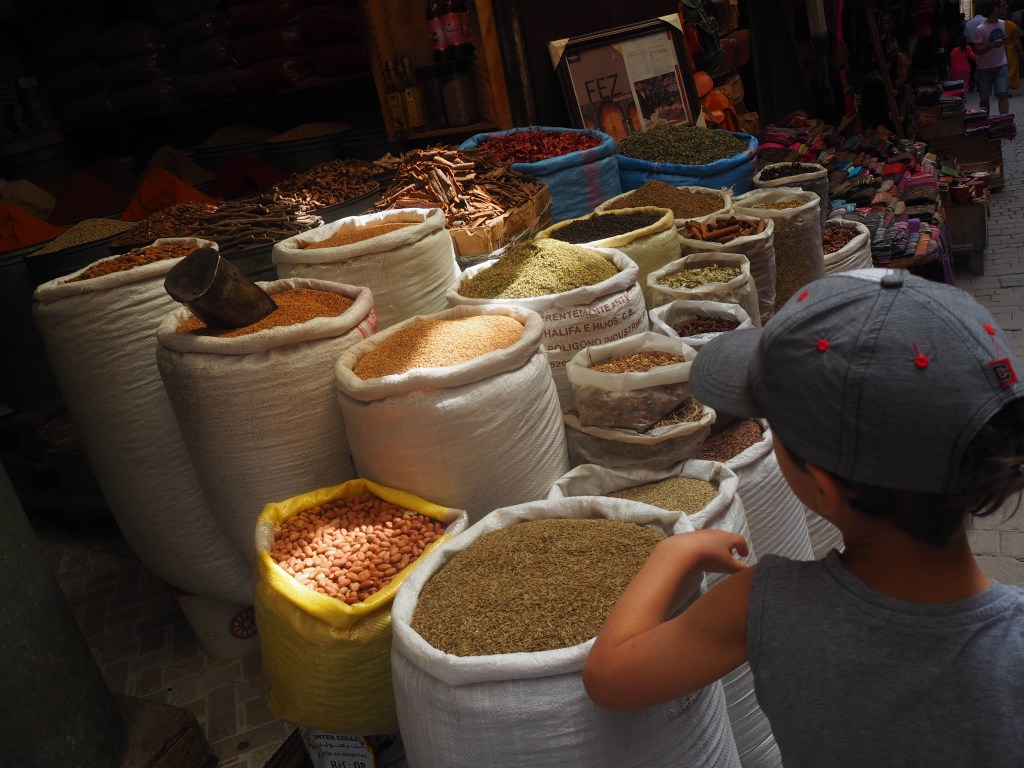 Potem było Maroko i targi w Fezie, Marakeszu czy Tangerze. Worki pełne pachnących przypraw, poukładane w stosiki owoce, ceramika, tkaniny, rękodzieło. Jednak najbardziej fascynujące dla dzieciaków były wiszące na hakach tusze zwierząt i leżące na ladach zwierzęce głowy. Chodziliśmy więc oglądać „wielkie mięsa”, a samo wyrażenie „wielkie mięsa” do dziś funkcjonuje w naszym rodzinnym słowniku.